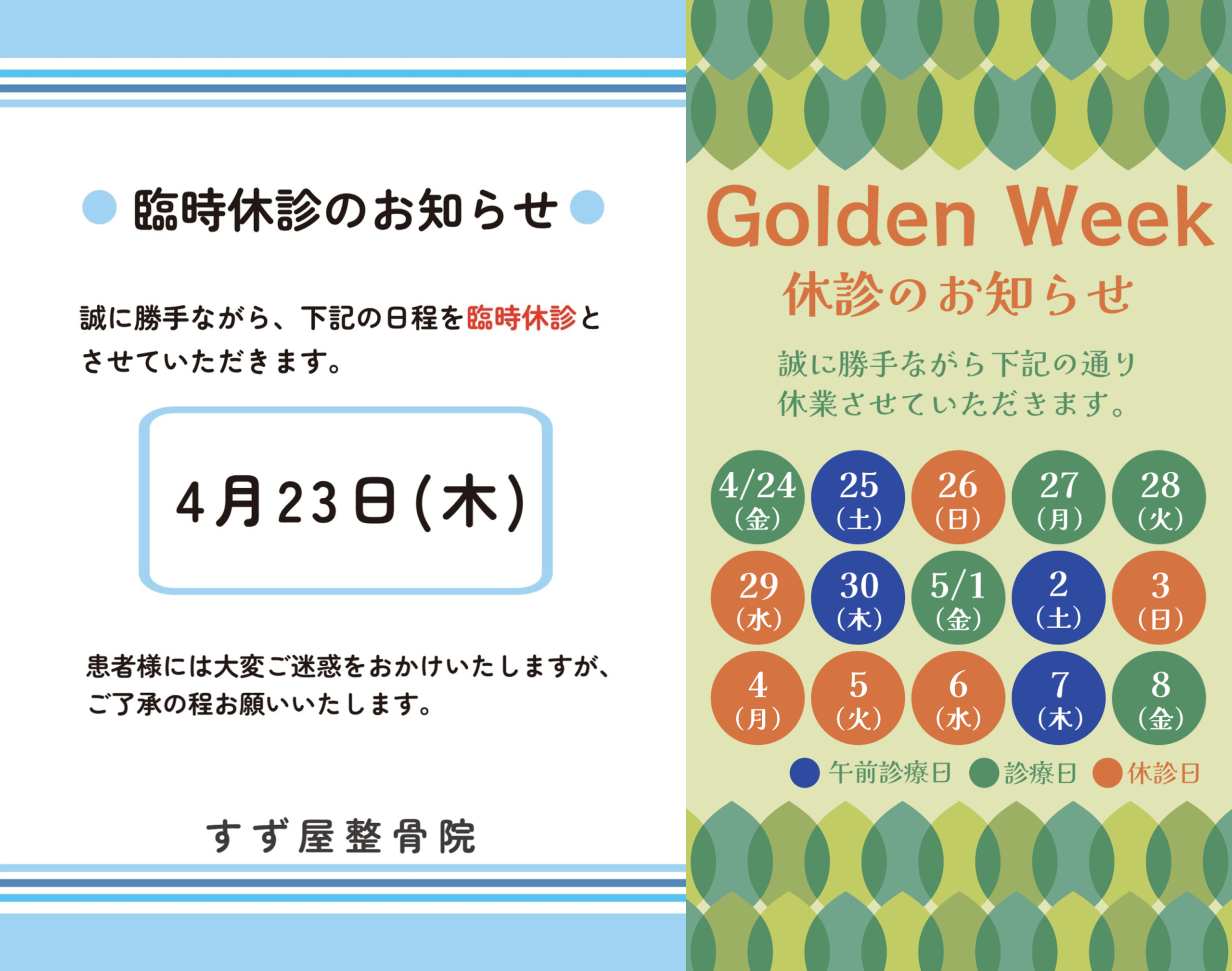 | 2026年4~5月ゴールデンウィーク 休診日のお知らせ |